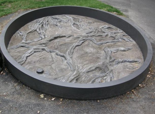Wasserbecken mit Wurzelrelief