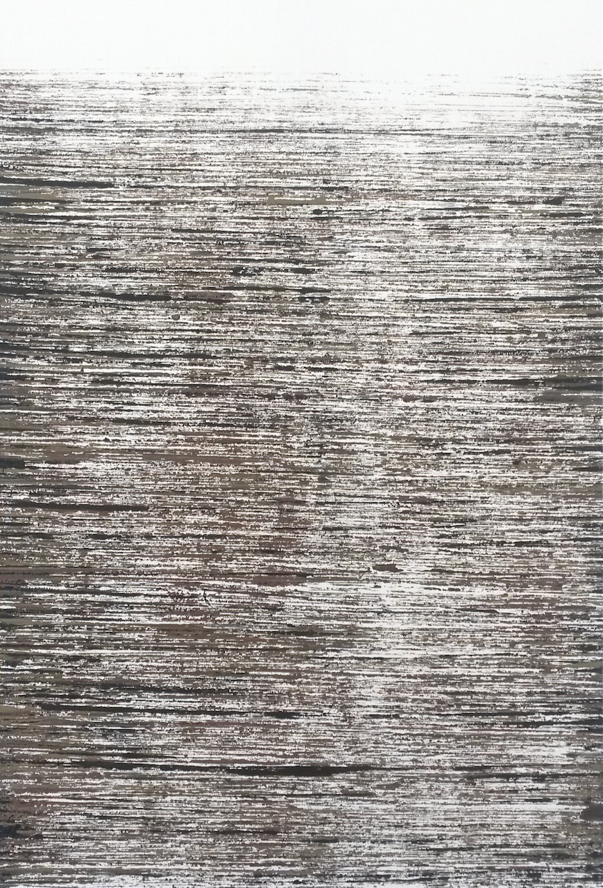 Serie: ‚Between the lines‘, 2015, 40 x 60 cm, Holzdruck, Acryl auf Papier